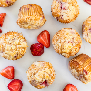 Fill each liner 3/4 of the way full with strawberry muffin batter.