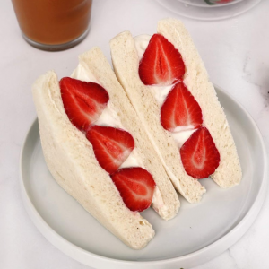 Evenly spread half a cup of whipped cream on one slice of crustless bread.
