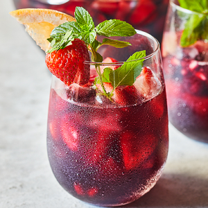 Pour into glasses and garnish with grapefruit slices, strawberry halves, and cranberries.