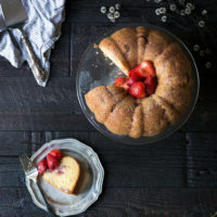Preheat the oven to 325 degrees F. Butter and flour a 10-inch bundt pan, place on a sheet pan, and set aside.
